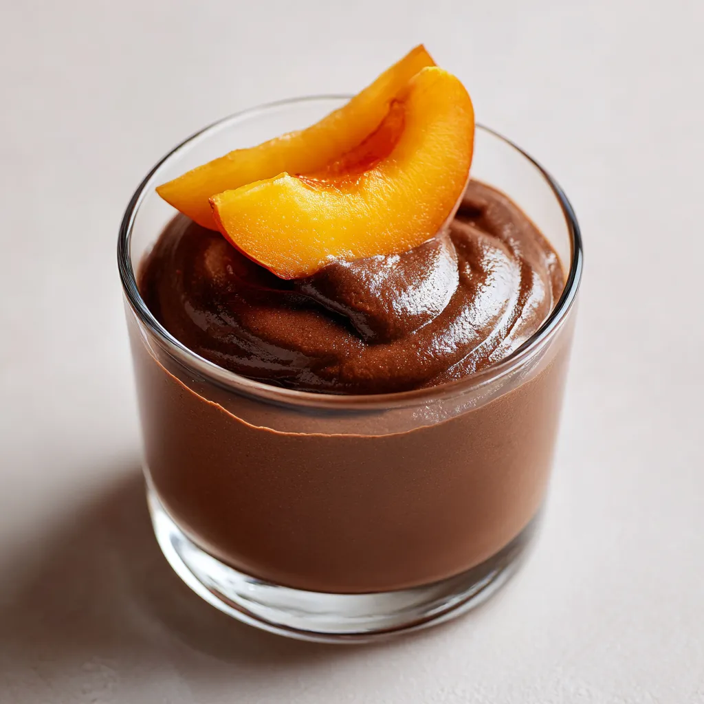 - Once chilled, scoop the mousse into clear glass dessert cups for serving. Garnish with a slice of peach or apricot for added visual appeal.