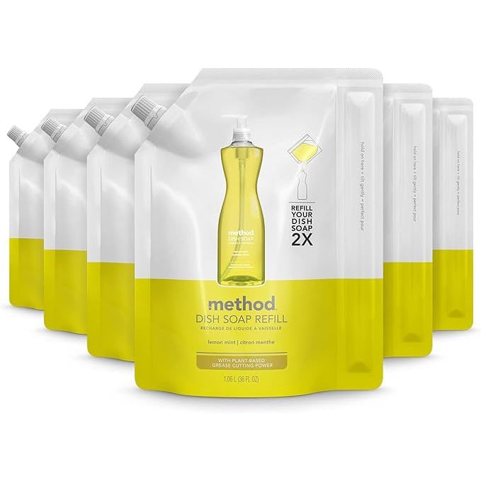 Keep your kitchenware impeccably clean and immerse your senses in the zesty fusion of lemon and mint with Method's Gel Dish Soap Refill. Our powerfully formulated, eco-conscious dish soap is supplied in a generous 36 fl oz package, presenting you with six convenient refills to streamline your dishwashing routine. Each drop packs a punch against stubborn grease, yet leaves a whisper of refreshing lemon mint fragrance that transforms cleaning into a revitalizing kitchen experience.
