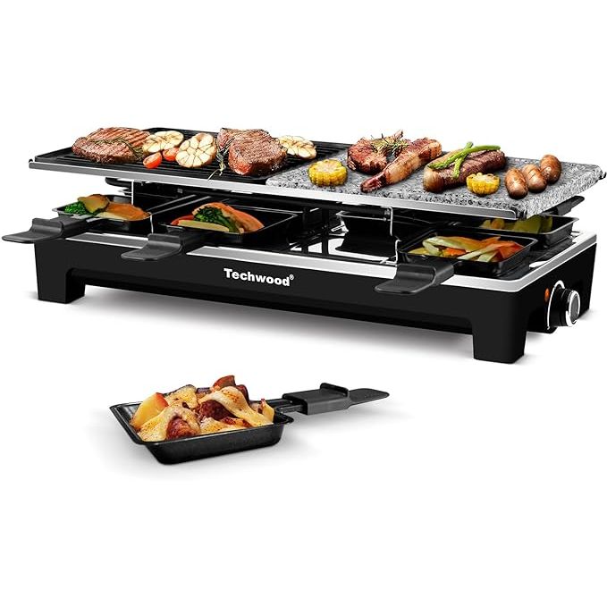 What sets the Raclette Table Grill apart is its 8 cheese melt pans, which can be placed on the top section of the grill for creating delicious raclette dishes. This unique feature makes it an excellent choice for gatherings and parties, as each person can enjoy their own mini cheese melting station, adding a fun and interactive element to your meal.