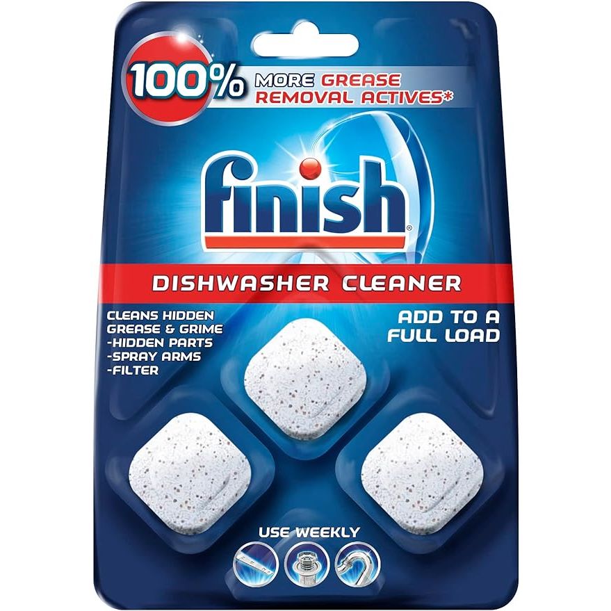 Keep your dishwasher in peak condition with Finish In-Wash Dishwasher Cleaner, the expert solution for a pristine machine. Harness the power of our advanced formula to effortlessly cut through the hidden grease, limescale, and stubborn residue that quietly build up in your appliance. Our convenient pack of 3 cleaning tablets is specially crafted to target and disintegrate these deposits, ensuring your dishwasher functions efficiently and emits a fresh cleanliness after every cycle.