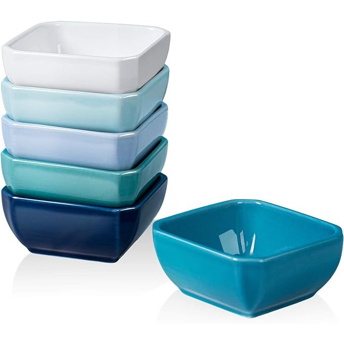 6 oz Porcelain Bowls - Delling Square Oven-Safe Bowls for Baking and Serving, Set of 6 Colorful