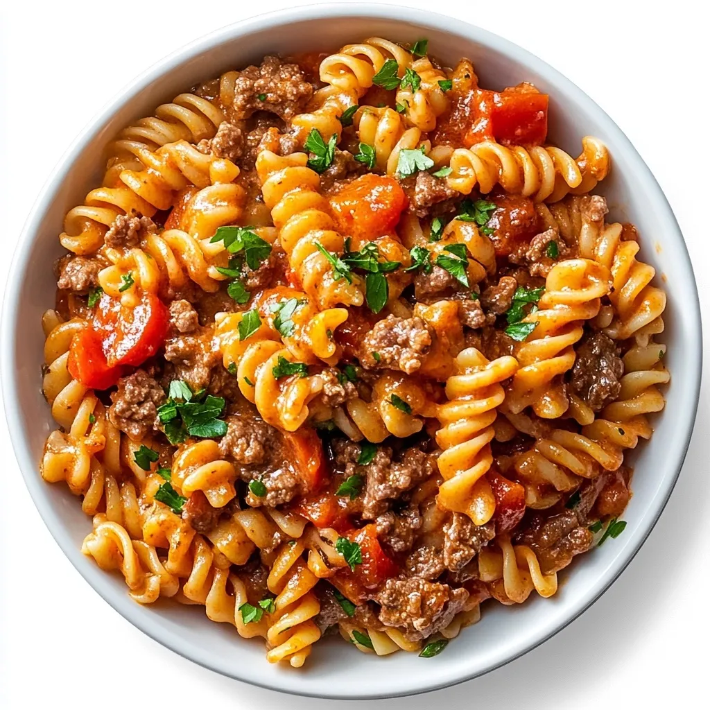Indulge in the rich, creamy flavors of this High Protein Creamy Garlic Beef Pasta, a delicious and satisfying meal perfect for busy days or meal prep. Tender lean beef is combined with perfectly cooked fusilli and a velvety garlic-infused tomato and red pepper sauce, all brought together with light cream cheese for a guilt-free indulgence. Packed with 47g of protein per serving and only 477 calories, this dish fuels your body while tantalizing your taste buds. Quick to prepare and budget-friendly, itβs the ultimate comfort food for health-conscious foodies. Garnish with parsley and Parmesan for an extra touch of flavor and enjoy!