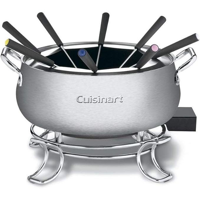 The Cuisinart Fondue Pot is equipped with an adjustable temperature control, making it easy to tailor the heat settings to your liking. Complete with eight color-coded forks, sharing and dipping are made simple and stress-free. Crafted from durable stainless steel, this fondue pot is not only easy to clean but also a stylish and long-lasting addition to your kitchen arsenal. Whether you're hosting a gathering or simply craving a fun and interactive meal, the Cuisinart Fondue Pot is an essential choice for any fondue connoisseur looking to elevate their dining experience. Optimize your fondue nights with this top-notch appliance that guarantees satisfaction every time.