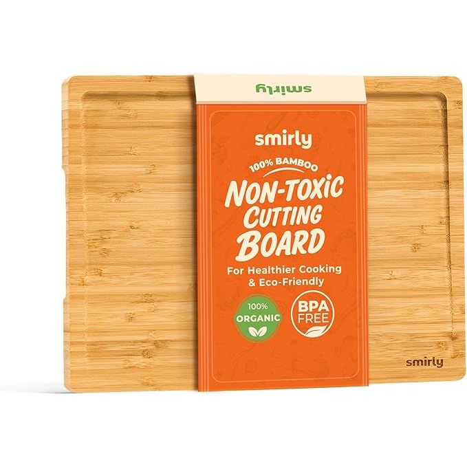 SMIRLY Large Bamboo Cutting Board for Kitchen: Extra Large Bamboo Cutting Board with Juice Groove & Compartments, Wooden Cutting Boards for Kitchen, Butcher Block Cutting Board Wood