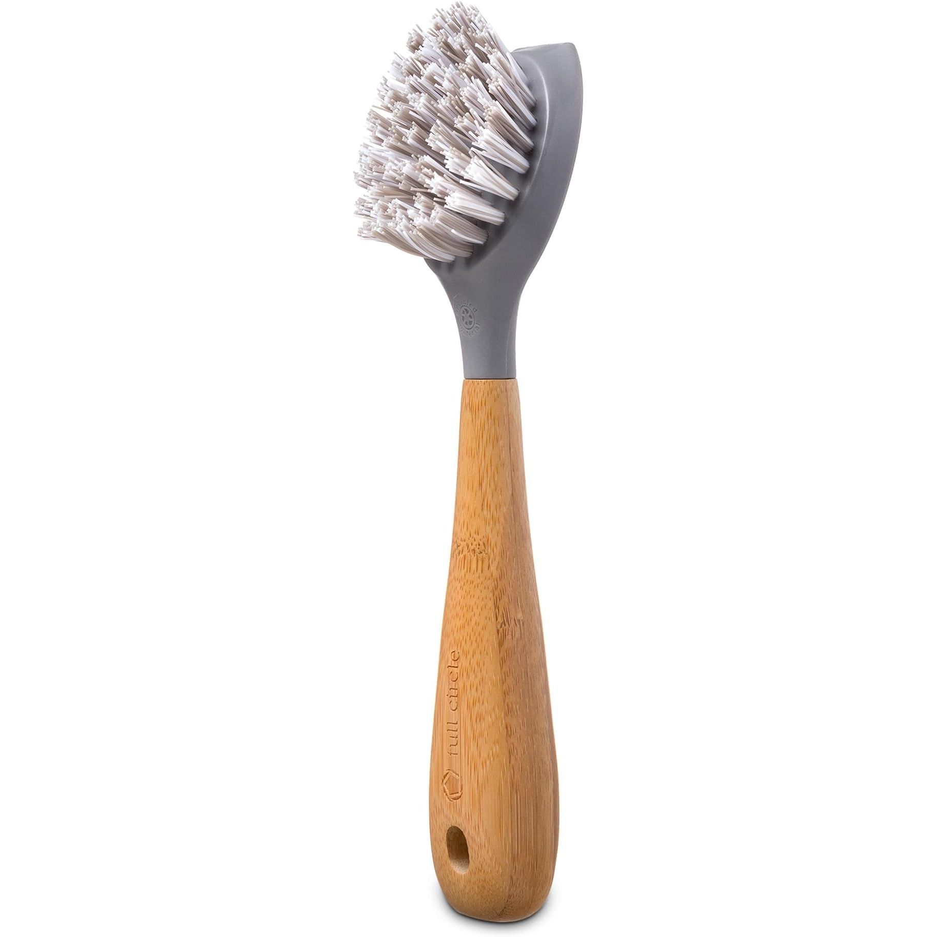 Full Circle Tenacious C Cast Iron Skillet Scrubber with Nylon Bristles and Bamboo Handle – Gray, One Size