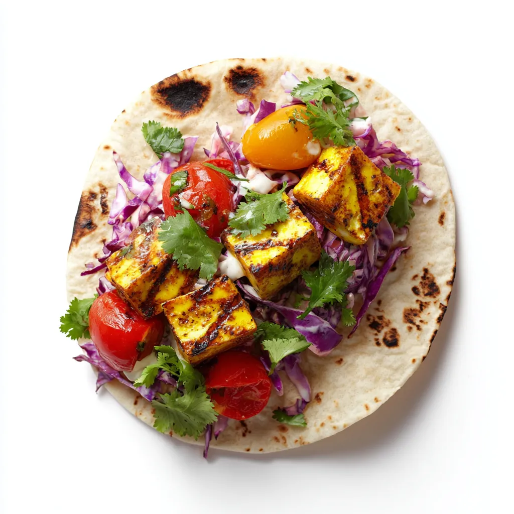 Experience a flavorful and protein-packed Indian vegetarian delight with these Grilled Paneer Skewers. Paired with a creamy yogurt-based coleslaw and homemade flatbreads, this dish is perfect for meal prep or a hearty main course. Enjoy the rich spices and vibrant colors that make this meal both delicious and appealing.
