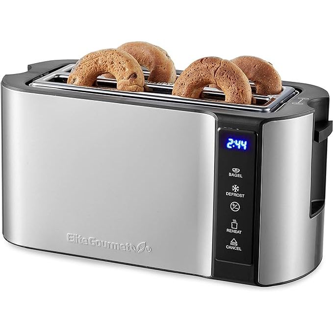 With its long slot design, the Elite Gourmet ECT5322 is perfect for artisanal bread or toasting multiple slices at once. Combining functionality, versatility, and durability, this toaster is a must-have for anyone looking to upgrade their breakfast routine. Elevate your kitchen with the Elite Gourmet ECT5322 Long Slot 4 Slice Toaster. Description by ChatGPT.