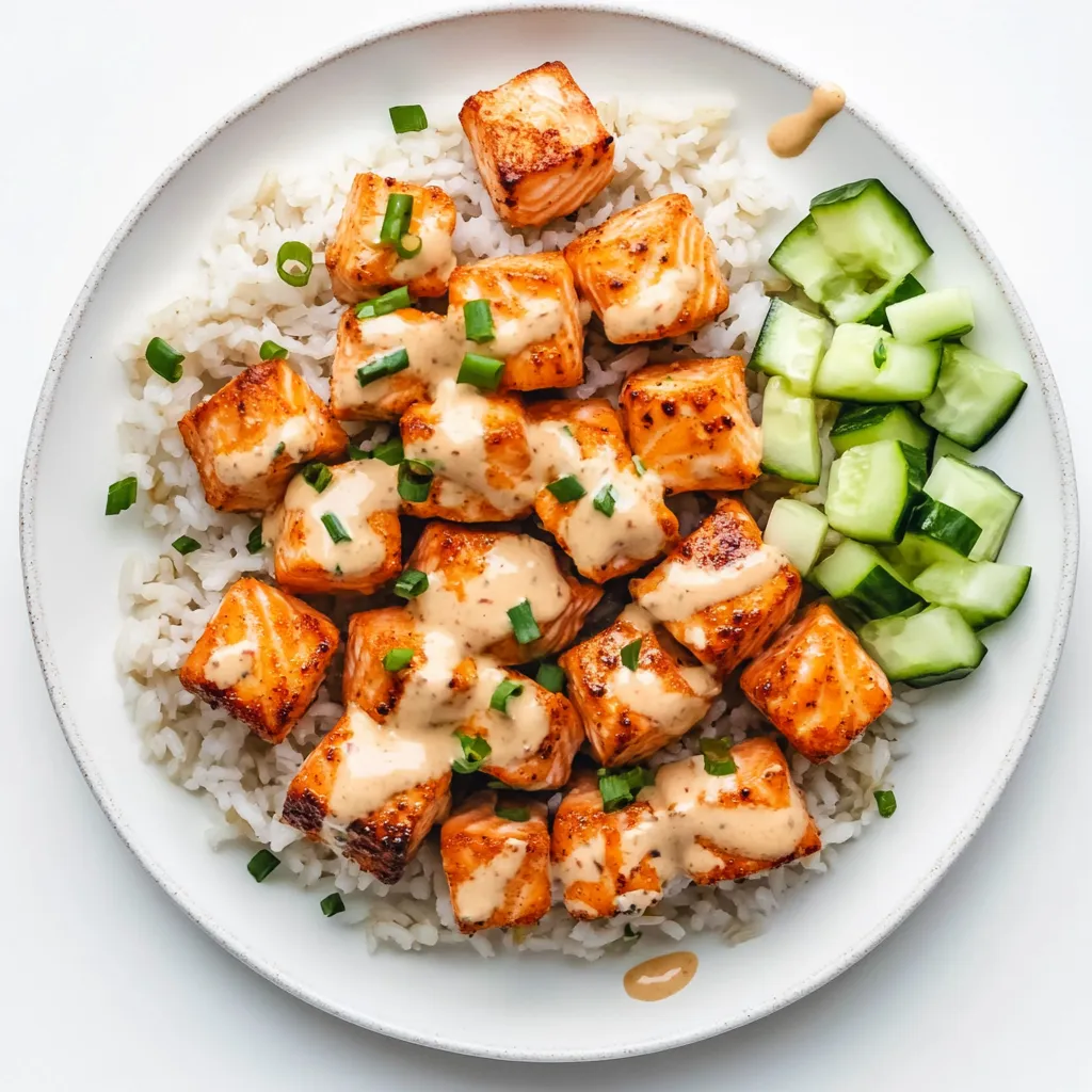 Indulge in these irresistibly crispy air fryer salmon cubes, seasoned to perfection with a delicious blend of spices. This quick and easy meal is served with brown rice, fresh cucumber, and your choice of sauce, making for a light yet satisfying dish thatโs perfect for any mealtime.