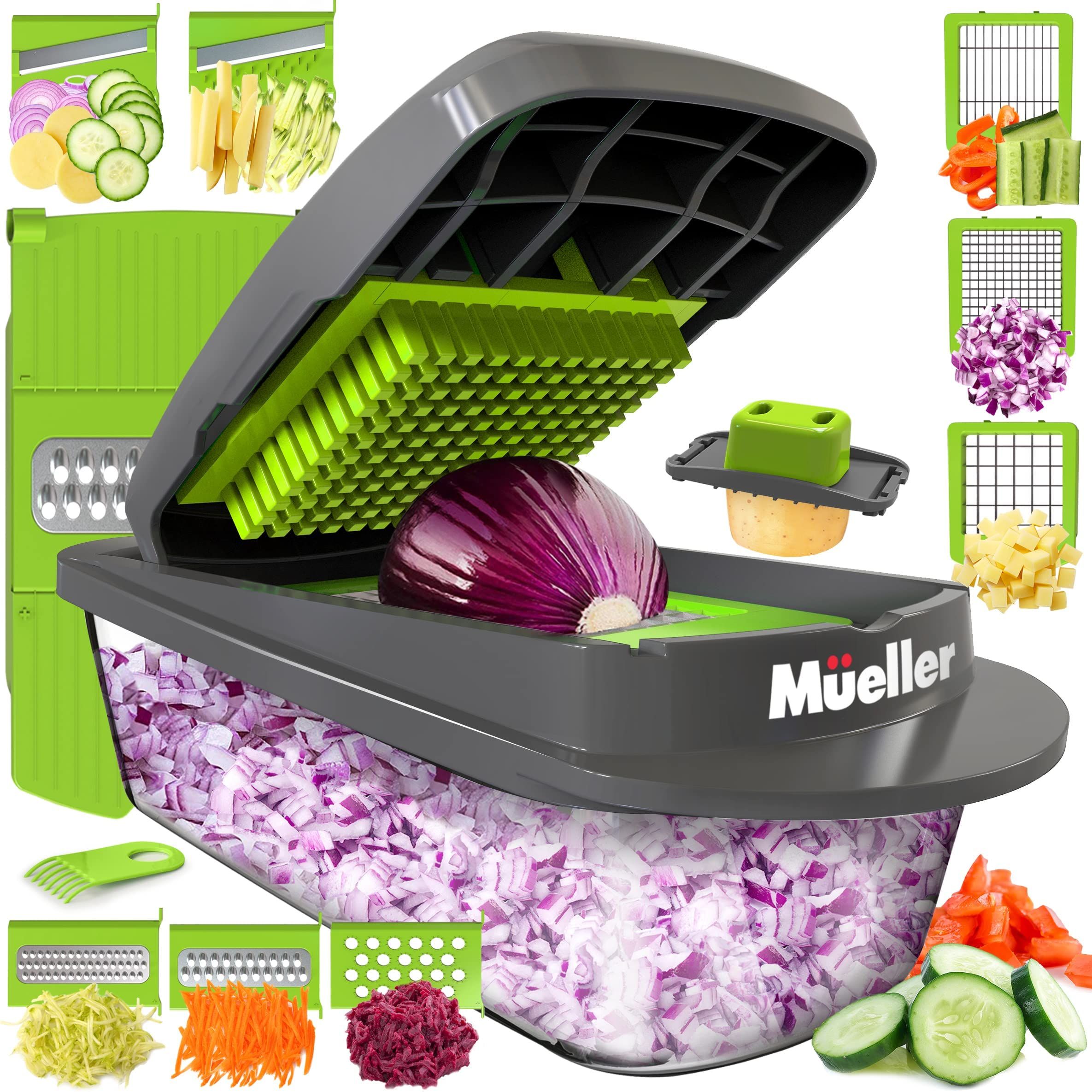 Elevate your cooking experience with the Mueller Pro-Series Onion Chopper, the ultimate tool for chopping, slicing, dicing, and spiralizing vegetables. Whether you're preparing a quick weeknight dinner or hosting a dinner party, this all-in-one chopper will help you achieve perfect results with minimal effort. With its sleek design and functionality, the Mueller Pro-Series Onion Chopper is a game-changer in any kitchen.