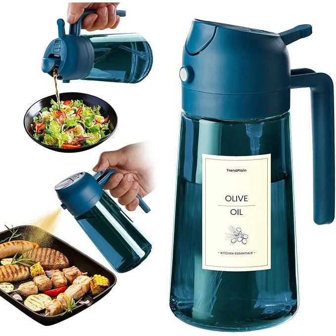 TrendPlain 16oz/470ml Blue Glass Olive Oil Sprayer for Cooking - 2 in 1 Olive Oil Dispenser for Kitchen Gadgets, Air Fryer, Salad, and BBQ - Navy