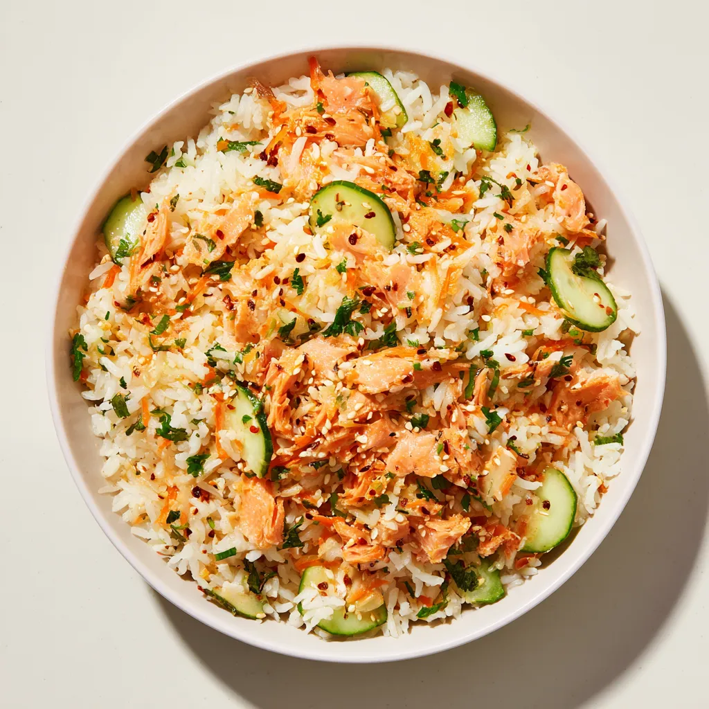 Dive into the fusion flavors of this Spicy Salmon Rice Bowl, a quick and vibrant dish that's perfect for lunch or meal prep. This Asian-inspired bowl combines fluffy basmati rice with succulent flaked salmon and crisp vegetables, all brought together with a medley of tantalizing sauces. It's an exciting and easy meal guaranteed to become your new lunchtime favorite!