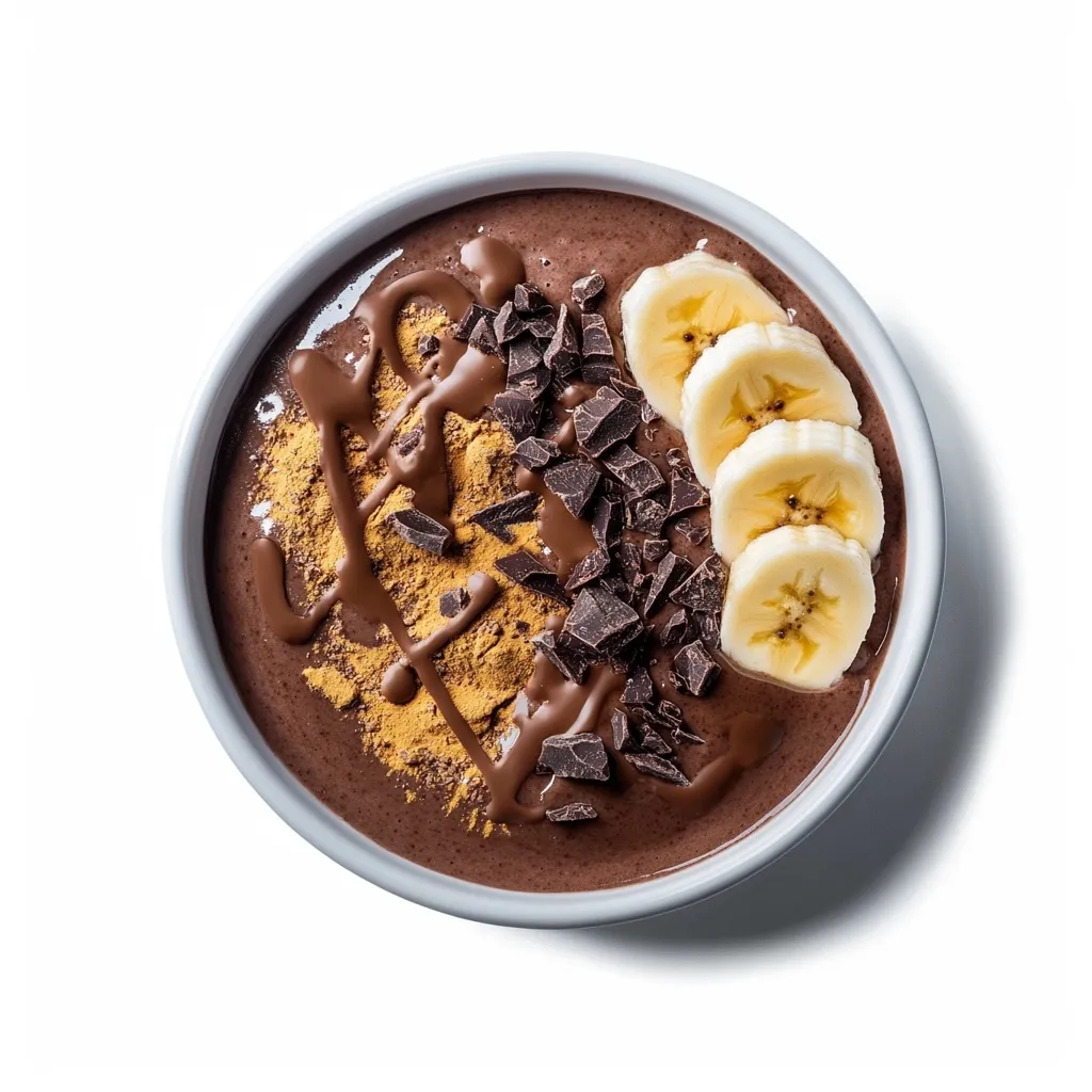 Pour the smoothie mixture into a bowl. Optionally, garnish with toppings such as a sprinkle of peanut butter powder, crushed peanuts, or a drizzle of sugar-free chocolate syrup (optional toppings not included in macros).