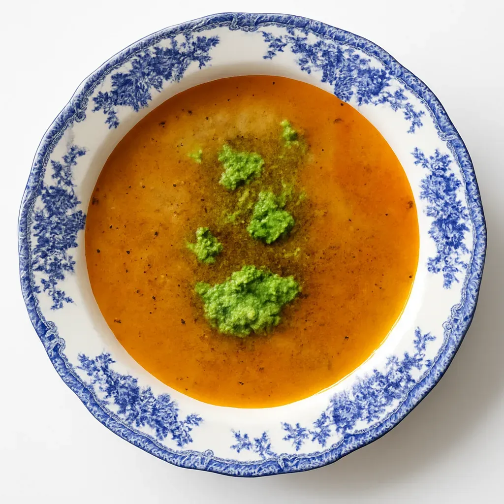 Discover the subtle sophistication of Caraway Soup with Parsley Walnut Pesto, a minimalist masterpiece from Romania, famously dubbed "Soup from Nothing." Despite its simplicity, this aromatic broth is a heartwarming blend of caraway seeds, onions, parsley, and walnuts, completed with dense cheese biscuits. This unexpected delight will challenge your notion of soup and might just become your new favorite.