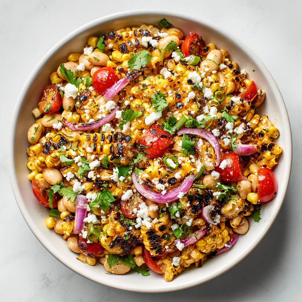 Experience the vibrant flavors of Mexican street food with this Smoky Elote-Inspired Charred Corn Salad. Drawing inspiration from the classic Elotes and Esquites, this salad combines smoky charred corn with creamy, citrusy notes for a fresh, healthy side dish or light meal. Packed with protein-rich white beans and loads of colorful veggies, this dish is simple to prepare and perfect for meal prep.