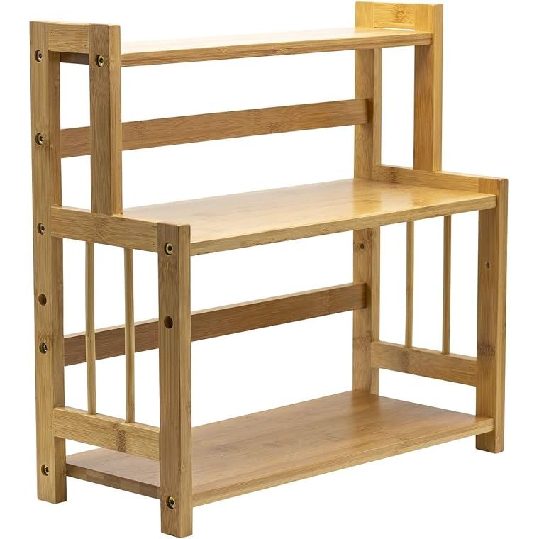 Sorbus Kitchen Countertop Organizer Bamboo Wooden Counter Storage Shelf Rack for Spice, Soap, Skin Care, Makeup Display Stand, Bathroom Shelves, Vanity, Office (3-Tier)