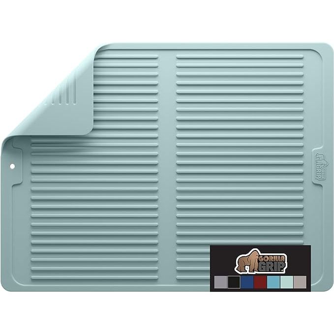 Gorilla Grip Silicone Dish Mat: Slip-Resistant, Fast-Drying, Heatproof Kitchen Sink Pad, Easy-to-Clean, Waterproof Countertop Protector, Fits Beneath Dish Racks, BPA-Free, 16x12 Inches, Mint Color