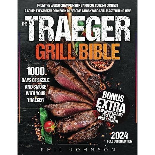 Discover the ultimate grilling companion with The Traeger Grill Bible: 1000 Days of Sizzle & Smoke With Your Traeger, penned by certified grill enthusiast, Phil Johnson. Specially crafted for the devoted Traeger owner, this exquisite cookbook is your all-encompassing guide to mastering the realm of wood-pellet grilling and smoking. Immerse yourself in a world where flavor knows no bounds, boasting a bold collection of over 1,000 recipes that cater to novices and seasoned grillmasters alike, all while expanding your grilling expertise.