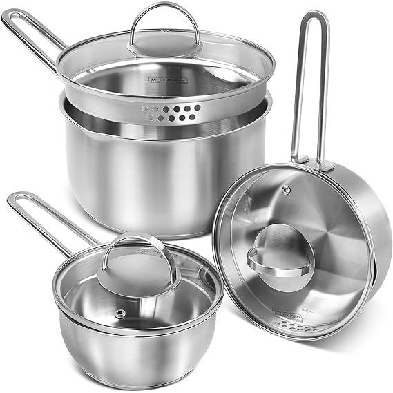 MICHELANGELO Stainless Steel Saucepan with Lid & Pour Spout 1QT & 2QT & 3QT, Tri-Ply Bottom Sauce Pan Set, Sauce Pot Set - 6 Pcs
