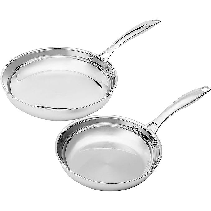 Silver Riveted Handle Frying Pan Set, Oven Safe - 8-Inch & 10-Inch