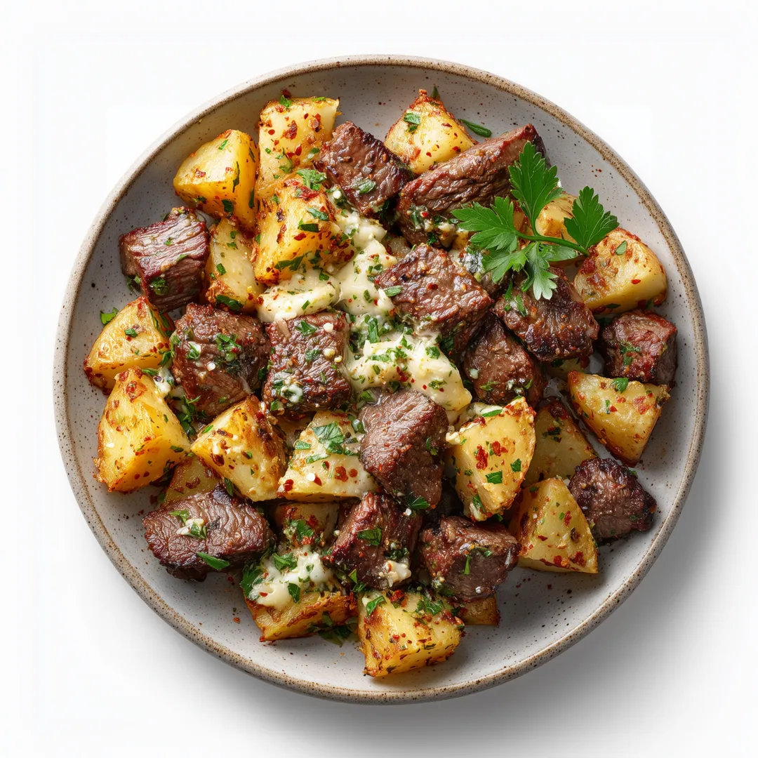 Creamy Garlic Butter Steak Bites with Crispy Potatoes
