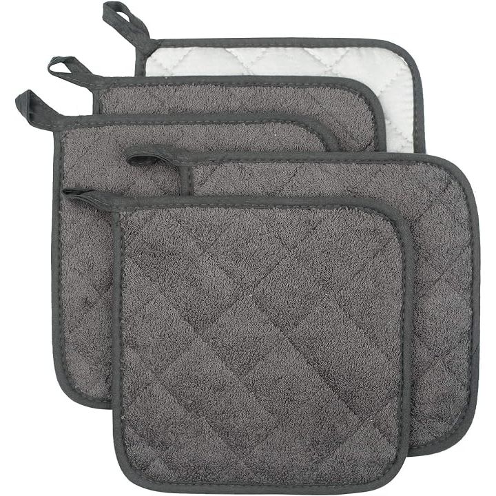 Lifaith Mineral Gray Terry Cotton Pot Holders - Heat Resistant Coaster Set for Cooking and Baking, Pack of 5