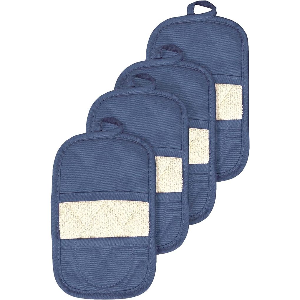 With a generous 8x8 inch dimension, these pot holders offer extensive coverage, confidently handling an array of cookware sizes. Their resilient construction is not only designed to shield your hands and countertops from scorching but also recommended for anyone seeking a touch of elegance in their meal prep routine. These Federal Blue pot holders are a winning choice for those looking to blend practicality with upscale design.