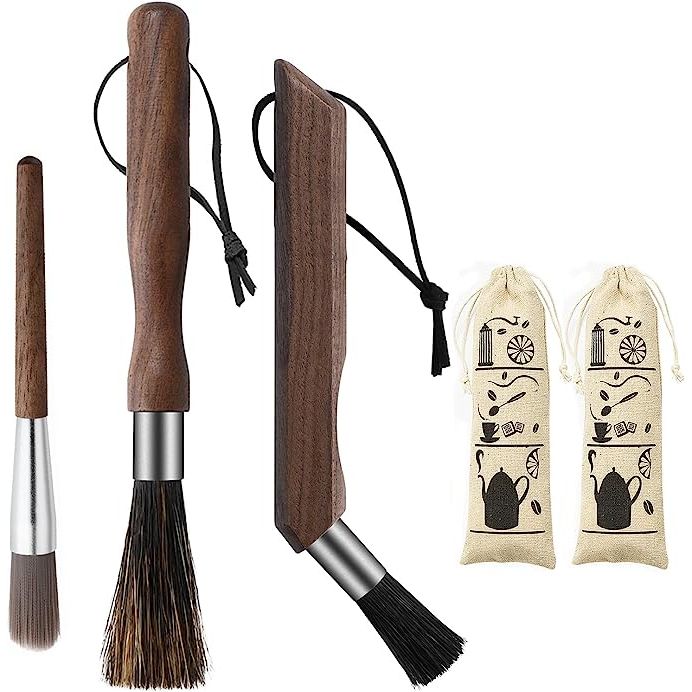 Not only do these brushes provide exceptional cleaning power, but they also add a touch of elegance to your brewing setup. With black walnut handles for durability and sophistication, these brushes are designed for comfort with an ergonomic grip. The set includes a brush tailored for cleaning your coffee grinder, ensuring every nook and cranny is thoroughly cleaned, along with two other brushes for your espresso machine and other coffee accessories.