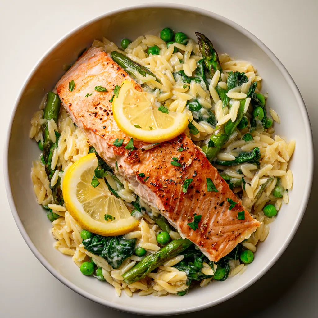 Experience the vibrant flavors of the Mediterranean with this easy and nutritious "One-Pan Salmon & Orzo Delight." Packed with wholesome vegetables and tender salmon, this dish offers a quick, delicious solution for weeknight dinners. With minimal cleanup and maximum flavor, it's a culinary escape to sunny shores.
